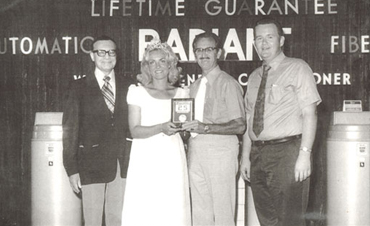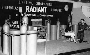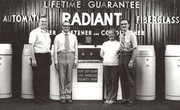 The Radiant Water Softener Company was founded in 1947 by Waldo Radiant Masters. After selling his restaurant in Ohio, he settled in Southern California with the intention of remaining in the restaurant business. Masters was astonished at the difference between Ohio's soft water, which kept dishes spotless, glassware sparkling, and coffee tasting the best, and California's hard water. Then Masters met Jerry Roper, owner of Roper Water Softener Company in Downy, CA. After seeing how Roper's Water Softener Systems improved cleanliness and customer satisfaction and cut the cost for restaurants, hospitals, and homeowners, Masters decided to open his own water softener business.